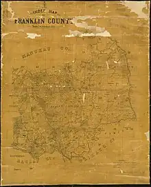 In 1923 Franklin County covered 620 sq mi (1,600 km2) and had a population of 9,730, with 183 mi (295 km) of gravel roads, 252 mi (406 km) of mud roads and 400 mi (640 km) of tracks.[2]