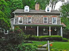 Franklintown Historic District is a national historic district in Baltimore, Maryland, United States. It is the result of a plan developed in 1832 by William H. Freeman (1790–1863), a local politician and entrepreneur. His plan evolved gradually over the course of several decades and owes its success to his untiring promotion of the village. The central feature is an oval plan with radiating lots around a central wooded park. The district includes an old stone grist mill known as Franklin Mill, the innovative radiating oval plan, and the associated hotel and commercial area. The key residential buildings are excellent examples of the "I"-house form and display steeply pitched cross gables found in vernacular rural buildings throughout much of Maryland.[2]