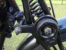 Motorcycles of the same period, through to the 1950s, that used girder forks also used friction disk shock absorbers. These were often provided with a large handwheel, so that they could be adjusted easily during a ride, or even whilst in motion.
