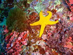 Fromia polypora, commonly called many-pored sea star or many-spotted seastar, is a species of marine starfish belonging to the family Goniasteridae.