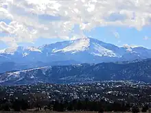 The Front Range runs north-south between Casper, Wyoming, and Pueblo, Colorado, and rises nearly 10,000 feet above the Great Plains. Longs Peak, Mount Blue Sky, and Pikes Peak are its most prominent peaks, visible from the Interstate 25 corridor. The area is a popular destination for mountain biking, hiking, climbing, and camping during the warmer months and for skiing and snowboarding during winter. Millions of years ago, the present-day Front Range was home to ancient mountain ranges, deserts, beaches, and even oceans.[2]