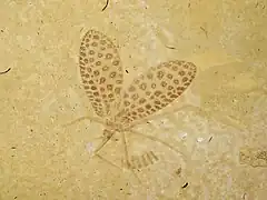 50 millions of years ago, at the beginning of the Eocene, the Apt and Céreste basins were covered by a vast inner lake. A tropical climate had created a rich fauna and flora, fossilized in thin plates of schistous limestone up to the Oligocene. Those various fossils correspond to a riverine flora and fishes, molluscs and insects.[3]