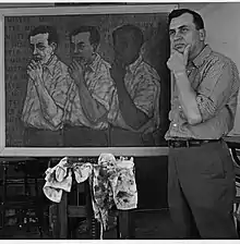 Byrd’s interest in figurative painting started in the early 1950s, and this work emphasized social realism, angst and banality in the twentieth century, and auto-biographical fantasy.[1][2][3][4][5][6]