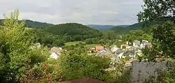 ![]() View from the Dreisberg to the south of the village of Gladenbach | |