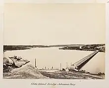 On 7 September 1860, Balmain Council resolved to approach the owners of the unsold parts of the Balmain Estate for a grant of land to build a road to the island.[4] The Pyrmont Bridge Company built a low-level timber-framed bridge that connected the island to Pyrmont, and thus to the city, in 1862.[5]