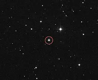 ![]() Image of AC +79 3888 (circled), also known as Gliese 445, located 17.1 light-years from Earth Credit: Caltech/Palomar | |