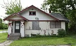There is a conscious arrangement to the bungalows in the district. The houses feature a double gable on the main façade of the structure. Each house has a mirror image twin that is positioned opposite or diagonal from it. Lot sizes and shape vary depending on where it is located on the cul-de-sac. The lot widths are between 40 and 45 feet, and lengths are between 70 and 147 feet.[2] The bungalows feature frame structures built on brick foundations. The interiors contain five rooms, which includes two bedrooms.