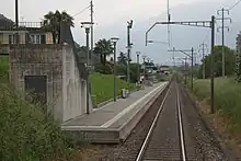 Gordola railway station (Italian: Stazione di Gordola) is a railway station in the municipality of Gordola, in the Swiss canton of Ticino. It is an intermediate stop on the standard gauge Giubiasco–Locarno line of Swiss Federal Railways.[3] The present station was rebuilt in 2019, with a new platform 200 metres (660 ft) east of the old station.[4]