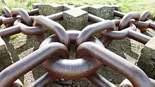 A large sculpture consisting of giant steel chain links was created at the highest point of the park in 2000. Called "Silent Links", it was designed by sculptor Ian Randall.[5]