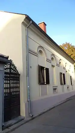 Velika Škola Building, also known as the Velika Škola (College) of Ivan Jugović, consists of two ground- floor buildings. The first, in the courtyard, was erected in the period between 1789 and 1804. The second, turned towards the street, was erected in 1862. The latter additional constructions were merged into the original building to form one single architectural whole. The building in which the school was placed was built as a typical Turkish residential house, probably surrounded by a garden. It was built in timber frame with brick filling. It had a two-gabled roof covered in tiles, at least during the time since it was possible to track it through the visual sources. There was a cellar underneath one part of the building, whereas the other part was joined with the adjacent building whose construction began in 1933 on the same lot and of the same owner. The building where the Velika Škola was placed underwent a lot of changes, but still managed to preserve its original characteristics, form and disposition. The first change was done in the period from 1858 to 1864.[2] The most radical change happened in the period from 1960 to 1962. The original entrance was masked with a wall, the roof line was straightened, the levelling of the courtyard was done, and the building was completely "adapted" for modern living.