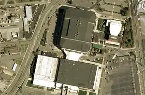 The venue reopened on December 28, 1993, for the "Reunion Classic", a men's basketball game between the UCLA Bruins and NC State Wolfpack.[5] This game was met with controversy as the Coliseum was not fully complete at the time of the game. City officials paid $200,000 to have firefighters on stand by during the game. The Coliseum and the newly expanded exhibition hall did not meet state and city building codes nor fire regulations, because of incomplete construction.[6] Additionally, the Coliseum did not hold the permits to host the event. This decision resulted in city council firing both the Coliseum manager and its contractors, Huber, Hunt and Nichols, Inc. (known for the Spectrum Center, BB&T Center and the PPG Paints Arena).[6] It was later determined it would take an additional ten months to have the complex comply with regulations. The city added an additional $20 million to the budget to renovate the Coliseum and the auditorium.[7]