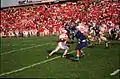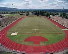 Prior to 1998 the field was natural grass. In 1998, the field was upgraded to an all weather prescription turf with the anticipation of hosting scrimmages by the Washington Redskins who held summer training camp at Frostburg State University. The prescription turf was again replaced for the 2008 football season and again replaced for the 2019 season.[1] In February 2022 the Allegany County Commissioners awarded $5 million to support the renovation of Greenway Avenue Stadium. Projects included in the package are replacement of the visitor's side bleachers and adding a new running track. The money will come from the fund balance for the project, with the county adding a pledge of $1.5 million from the American Rescue Plan Act.