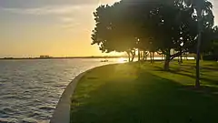 The island's wide open spaces and expansive tree canopy are valued highly by its residents.[44][45] The gardens and decks of Grove Isle were replanted after damage received from Hurricane Irma in September 2017.[46][47] Major renovations to improve the structural and aesthetic integrity of the three towers, their decks and the gardens were also undertaken.[46] The retention of the island's tree canopy and its mature trees remain a priority for many on Grove Isle and in Coconut Grove.[44][48][49]