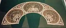 Halas lace is a type of needle lace. It first appeared in 1902[1] in the town of Kiskunhalas, Hungary, colloquially known as "Halas". The lace was typically soft orange, pale green and yellow in colouring.[2] Arpad Dekani and Maria Markovits are credited with developing Halas lace.[1] Initially, Dekani did all of the design work while Markovits executed the designs.[1]