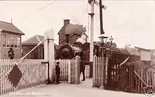 Horsmonden station has been converted to a private garage trading as the "Old Station Garage", with the old stationmaster's house in use as a private dwelling.[87] A station sign is preserved on the garage wall and part of the platform survives in the workshop.[88] Goudhurst station, yard and level crossing have disappeared as a result of road-widening and residential development;[89] a private house called "Haltwhistle" stands on part of the old goods yard. The old station lights have been re-used along the drive of the house.[90] Cranbrook station was used for many years as a pottery, and its stationmaster's house is now a private dwelling, with part of the goods yard also having survived.[91] The signal box has survived and the station building has been extended to meet with it; the trackbed is now part of the lawn.[92] The site of Hawkhurst station is now occupied by Kent Woodware Co, a wood turnery business. The main station building was demolished in the 1960s but the engine and goods sheds, stationmaster's house and signal box are still extant. The owner, a railway enthusiast, ensures that the signal box receives "a good coat of paint every other year".[93]