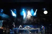 Haze machines, or haze generators (commonly referred to as hazers), are effects machines similar to fog machines, designed to produce an unobtrusive, homogeneous clouds suspended in the air intended primarily to make light beams visible or create a subtle diffusion.