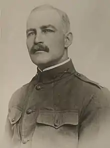 In 1894, Hill enlisted in the Illinois National Guard as a private assigned to Company F, 4th Infantry Regiment.[1] He advanced through the ranks to first sergeant of his company.[3] During the Spanish–American War, his unit was mobilized as part of the United States Volunteers and trained at Camp George H. Thomas, Georgia, then returned to Illinois after the end of the war eliminated the need for their continued service.[3] He was commissioned as a second lieutenant in 1899.[1] Hill was promoted to captain in 1902, commanded Company F, and later served as adjutant of the 5th Regiment.[4] He was promoted lieutenant colonel in 1908 as second-in-command of the 5th Regiment.[4] In early 1914, Hill was assigned to command of a provisional regiment in the Illinois National Guard.[5] In late 1914, he was promoted to brigadier general as commander of the Illinois National Guard's 2nd Brigade.[1][3]