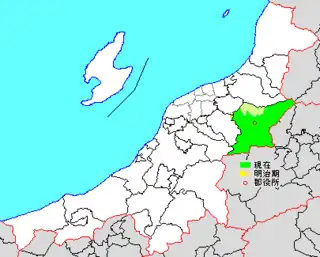 - The district was once belonged to Aizu clan and later became part of Wakamatsu Prefecture then to Fukushima Prefecture until 1889 when the district was transferred to Niigata Prefecture.