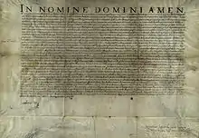 The privilege by which Jesuit academy in Vilnius was turned into University signed by King of Poland and Grand duke of Lithuania Stephen Báthory in 1579 April the 1st. Document from Lithuanian State Historical Archives.