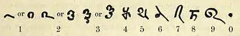 | European (descended from the West Arabic) | 0 | 1 | 2 | 3 | 4 | 5 | 6 | 7 | 8 | 9 |