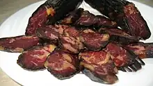 Horses are considered meat animals in Mongolia. Each 600 lb. Mongol horse yields about 240 lbs. of meat.[52] The horse in question may be an old, barren, injured or unneeded animal, such as a stallion who has lived past his prime. The meat of horses is considered to be safer to eat than the meat of other livestock. As one Mongolian explained, "Because the horse does not get diseases that other livestock become sick of, [sic] such as tuberculosis and other inflammatory diseases, its meat and milk are considered to be clean." William of Rubruck reported that the Mongols used the intestines of the horses to make sausages. Horses are considered to have the fourth most desirable kind of meat, after sheep, cattle and goats. Mature animals are preferred to young ones, as the taste is considered better. Horses are slaughtered in late November when the animals are at their fattest; it is considered bad practice to slaughter them in the summer.[53]
