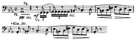 The first section of the piece, marked Tempestuoso, allegro non troppo carries Liszt's instruction: "Conductors: the entire colour should be kept very dark, and all instruments must sound like ghosts."[2] Liszt achieves much of this effect by scoring the entire string section to play with mutes, even in fortissimo passages. This section depicts an atmosphere of foreboding and suppressed rage before the battle breaks out.