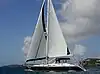 The Stevens 47 and Hylas 44 foot versions were popular charter sailboats. Along with Bill Stevens, Caribbean Yachts Charters (CYC) under Dick Jachney ran a charter fleet of 44 and 47 Hylases.[1] Jachney split the cost of new Hylas Yachts with private owners in exchange for using their boat in the CYC fleet for a couple years.[3] This allowed the owner to save considerably on a new Hylas.[3] While a former charter boat could have been refitted, in general these are poorly outfitted for cruising and have high engine hours.[2] The presence of high engine hours on chartered Hylas 44's is especially troubling because of the difficulty of repowering.[4] In 1990, Joseph Huang and Dick Jachney joined forces and redesigned the 44 and 47 adding sugar scoop sterns into eventually the 46 and 49 versions.[5] These 46 and 49 Hylases became the mainstay of the CYC fleet.[1]