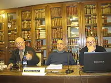 ![]() Antoni Pladevall, Armand de Fluvià and Esteve Canyameres during an ICGenHer debate on genealogy at the Ateneu Barcelonès. |