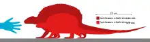 It is one of the smallest edaphosaurids known, with an 8 cm (3.1 in) skull and a total body length of 75 cm (30 in).[1] Ianthasaurus lacks many of the spectacular specializations seen in Edaphosaurus. For example, the marginal dentition of Ianthasaurus is similar to that of insectivorous reptiles, with slender conical teeth which are slightly recurved at the tips, and there is a slight development of a caniniform region. The palatal and mandibular dentition is unspecialized, and there are no batteries of teeth for crushing of plant materials. Also unlike Edaphosaurus, Ianthasaurus was lightly built and was probably quite agile. The skull was similar to that of Haptodus, a sphenacodontid, though they were distantly related.