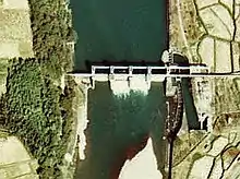 An overhead view of the Iejigawa Dam.