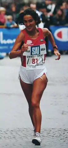 She won ten medals, to senior level, at the International athletics competitions.[3] Specializing in indoor competitions running, boasts six medals (three European silver and three World bronze), just earned indoor. She participated at one edition of the Summer Olympics (1992), she has 29 caps in national team from 1987 to 1996.[4] She was twice World Best Year Performance in Women's Race Walking: 1992 in the 10 km walk and 1993 in the 20 km walk.
