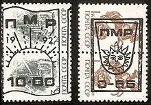 - ↑ Murphy, Niall. "PMR Catalogue of USSR Overprints - The "Sun Face" Group". PMRstamps.org. Retrieved 26 October 2014.