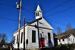 Immanuel Evangelical Lutheran Church is a historic Evangelical Lutheran church located at E Pine and N Ziegler Street in Pilot Knob, Iron County, Missouri. It was built in 1861, and is a simple, rectangular, frame building. It measures 30 feet, 7 inches, by 45 feet, 7 inches. It is sheathed in clapboard and has a gable roof topped by a hexagonal cupola with a steep, pyramidal roof and apron.[2]: 3