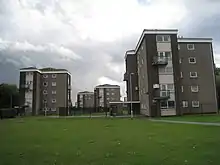 The expansion of the village included: Eastfield County Junior School built in 1970; expansion of the comprehensive school, 1973;[17] a shopping centre "Kennedy Way" constructed in 1965–7; and north of the centre 18 blocks of five storey flats constructed by George Wimpey from 1965;[44] a Civic Centre also opened in 1965.[44]