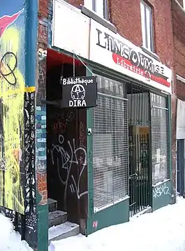 An infoshop (the word being a portmanteau of information and shop) is a physical space where people can access radical ideas through flyers, posters, zines, pamphlets and books. It also provides a space to meet other people and in some cases to organise events such as meetings or fundraisers.[1] Some infoshops have computers, copy machines and printers so that pamphlets, position papers, articles, magazines, and newspapers can be created and then circulated between the network of spaces.[2]