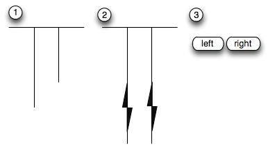 One version of the inspection time stimuli is shown below (1) with the stimulus (short left given as an example), which is replaced by a mask (2). (3) indicates the opportunity for the subject to report which stimulus they saw at their leisure.