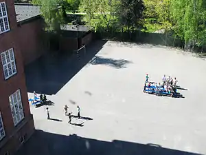 The school's campus has a large main building with four floors, an annex building for kindergarten and after-school clubs, a theatre and a large gymnasium. The school is situated in the Østerbro section of Copenhagen, directly across from the United States Embassy and only minutes from the heart of the city and the coast.[1]