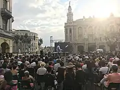 The 2017 Global Host celebration was held in Havana, Cuba. The program took place over a week from April 24 – 30.[60] The 2017 celebration spanned venues including the Pabellón Cuba in Vedado, the Instituto Superior de Arte on the grounds of the former Habanero Country Club,[61] the Fábrica de Arte Cubano, and the municipal amphitheater in the eastern township of Guanabacoa. Conservatories throughout the city were included, as were jazz clubs such as the Jazz Café, La Zorra y el Cuervo, and El Tablao. The educational and service component included Esperanza Spalding, Marcus Miller, Antonio Hart, and Regina Carter. There was a panel discussion on jazz and cinema at the Hotel Nacional de Cuba, which included UNESCO Director-General Irina Bokova, Herbie Hancock, Quincy Jones, and Chucho Valdés.