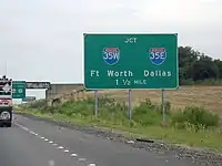 Just southwest of Denton, I-35W and I-35E join to reform I-35, which then continues north to the Oklahoma state line. The exit numbers on I-35 continue on from the last exit of I-35E.