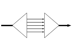 This provides an end to end connection of several times the data rate available on each of the low rate data links. Note that, as with multiplexers, links are often used in bi-directional pairs and, at either end of the link, an inverse multiplexer will be combined with its reverse (an inverse demultiplexer) and still be called an inverse MUX.