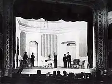 Some of the first actors of Darülbedayi worked in various stages before installation (Behzat Butak, Nurettin Şefkati, Rıza Fadıl, Fikret Sadi, Ahmet Muvahhit, Muhsin Ertuğrul, Raşit Rıza, İ.Garip Arcan) (Hazım Körmükçü-1915, Vasfi Rıza Zobu-1917, Hüseyin Kemal Gürmen-1918). Some others (M. Kemal Küçük – 1920, Emin Beliğ Belli – 1920, Mahmut Moralı – 1923) theater studies began in various communities, and later involved in Darülbedayi. Upon the announcement for student candidacy, 197 people applied to Darülbedayi. 63of them was successful at first. Only eight Christians applied as women. So, finding a female actress has remained an important issue for a long time. The Muslim women's first taking part in Darülbedayi was in November 1918. They were young Turkish girls named Behire, Memduha, Beyza, Refika and Afife. The first actress to stage was Afife (1919, Hüseyin Suat Yalçın's "Yamalar" game). With the interest of Mustafa Kemal Atatürk, Turkish women took place of Armenian women and after 1923, Bedia Muvahhit and Neyyire Neyir were taken to the stage life.[3] After Antoine went, Reşad Rıdvan organized an opening ceremony (November 1914) not to be forgotten of Darülbedayi project. After a while, this art institution faced the danger of closing. At the time, Mayor Ismail Canbulat, requested a regulation. The work that started in November 1914 ended in January 1915. The first regulation prepared for Darülbedayi consists of thirty-seven substances. Darülbedayi was not only a school with this arrangement, but also a community that staged professional plays at the same time. The name "House of Beauty" came from Ali Ekrem Bolayır.[4]