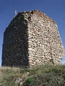 The city is built on top of the volcanic cone, which is flattened. Tower has a height of 14 m, the sides ca 7.78 and 5.80 m, standing on Roman foundations, with 1.34 m thick walls of rough-cut blocks hourglass. On the north side of the tower rests on a medieval church with my 56 degree, razed to the ground. On the south side are the remains of the young building.