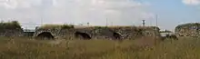 The khan is opposite the mosque. It was built by Sayf al-Din Tankiz, the governor of Damascus 1312–1340,[15] and it was still functioning in the 16th century, when it was mentioned in an Ottoman firman.[16] In the 19th century it was seen by Guérin, who described it as a beautiful khan with a (ruined) polygonal minaret.[17] Petersen, who surveyed the structure in 1996, found the courtyard entirely overgrown and it was not possible to detect any features within; however, he notes that a 19th-century visitor had mentioned that there was "a great round well" in the centre.
