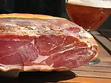 The Jambon sec des Ardennes (lit. French for Ardennes dry-cured ham) is the collective certification mark for dry-cured hams from the French department of the Ardennes, made from pigs' legs purchased from local farmers and processed by salting, drying and aging.