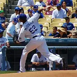 He made his professional debut pitching for the Gulf Coast Dodgers in 2003, where he compiled a modest 3.33 ERA with 47 strikeouts over 48.2 innings of work, although unfortunately a case of tendinitis prevented him from pitching in 2004 and most of the 2005. But instead of opting for a rehab program, McDonald and others were still interested in his hitting ability. He made the switch to outfield, thinking he could still work with trainers while keeping occupied in left field, but after sub-.230 batting averages in '04 with the Gulf Coast Dodgers and again in 2005 with the Ogden Raptors, he expressed his desire to return to pitching. "When I was in the outfield, I felt like I was just running around. I am a lot more competitive when I'm pitching, it's more up to me to get guys out." he explained to Bill Shelley. In 2006, he was back on the hill full-time for the South Atlantic League's Columbus Catfish where he led the pitching staff with an ERA of 3.97 and 147 strikeouts in 143 innings of work but only managed to finish with a record of 5–10.[1] McDonald started 2007 with the Inland Empire 66ers before he was promoted to the Double-A Jacksonville Suns. He was named the Dodgers' Minor League Pitcher of the Year in 2007.[2] In August 2008, he was promoted to the Dodgers Triple-A affiliate, Las Vegas 51s. He went 1–0 in his first two starts, striking out 20 batters in that span. He was called up to the Dodgers on September 1, 2008. He made his major league debut on September 17, 2008, against the Pittsburgh Pirates, working one scoreless inning in relief. In February 2009, McDonald was named the #56 prospect in baseball by Baseball America.[3] McDonald then earned a spot in the Dodgers' starting rotation to begin the 2009 season and started his first game in the majors on April 10, 2009, at Chase Field against the Arizona Diamondbacks, allowing five runs in a little over two innings. He made three more starts, only lasting as many as five innings in one (April 25 against the Colorado Rockies, his first career victory), and then was demoted back to the bullpen. With an ERA of 6.75, he was optioned back to AAA on May 14, and then recalled by the Dodgers on June 19. After being recalled, he pitched exclusively out of the bullpen the rest of the season. McDonald began 2010 in the starting rotation for the Albuquerque Isotopes. He was recalled by the Dodgers to start the game on July 19 against the San Francisco Giants. He made a few additional appearances in the bullpen for the Dodgers.
