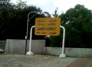 James Street railway station is a railway station in Secunderabad. The station was built in 1874 and was the second station after Secunderabad station on the Hyderabad–Wadi sector by Nizam State Railways.[2] The station derives its name from erstwhile James Street located adjacent to this station. This street after independence was later renamed as Mahatma Gandhi Road. Other localities such as Rani Gunj and the Hussain Sagar lake are accessible from this station.