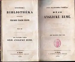 - Doba prwního člowěčenstwa, aneb, Auplnější wylíčení stawu prwního pokolení lidského, 1846 (The Age of the First Man, or, A More Complete Portrayal of the State of the First Generations of People; except for using w and au one of the first Czech books to use a more modern orthography and also less luxuriant style which was typical of the first phase of the Czech National Revival)
