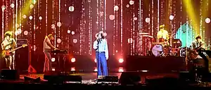 Jannabi has typically been associated with variety of genres, including indie rock,[161] psychedelic rock,[162] folk,[163] pop rock,[164] chamber pop,[165] and art rock[166] with incisive lyrics and songwriting style suitable for easy listening.[167] They incorporated the nuances of the roots of Korean popular music originally called gayo and classical music elements in innovative ways.[168][169][170] In a 2017 interview with The Korea Herald, defining the band's music, the members said: “Sound that comes from your parents’ car.”[171] In a 2022 interview with Yonhap News Agency, Choi Jung-hoon shared that their music represents a lot of Korean sentiment, saying: "Our song seems to explain a lot and dig into our emotions too much to listen to, but on the contrary, it allowed us to protect our music."[172] Music journalist Son Hye-min wrote: "Jannabi's charm is the atmosphere of the song that seems to create nostalgia for the past, the lyrics that can be a poem if you spread it out on paper and the emotion that contains more than just saying it is tacky."[173]