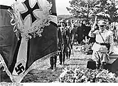 Jeschonnek's rapid promotions perhaps reflected his devotion to Hitler and National Socialism.[24] Jeschonnek never questioned Hitler's policies and took his Führer's word on important matters.[24] Jeschonnek was a member of the Nazi Party, along with several others in the higher echelons of the Luftwaffe, which earned it a reputation as a Nazi service.[25] The efforts to imbue Luftwaffe staff officers in general with ideology, however, were no more successful in the air force than in the army.[25] Later on, in 1944, the SS proposed the Luftwaffe be placed under its command due to the perceived lack of commitment to National Socialism.[25] Jeschonnek's attraction to the new regime was rooted in his Prussian officer training which stressed discipline, austere self-denial in the performance of duty, and subordination to the military hierarchy. Jeschonnek strove to personify this ideal. Hitler emphasized this tradition in his speeches and proclamations to Prussianism and its virtues.[26]