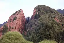 In the mountains surrounding Jeti-Ögüz, with visible pine-tree plantations